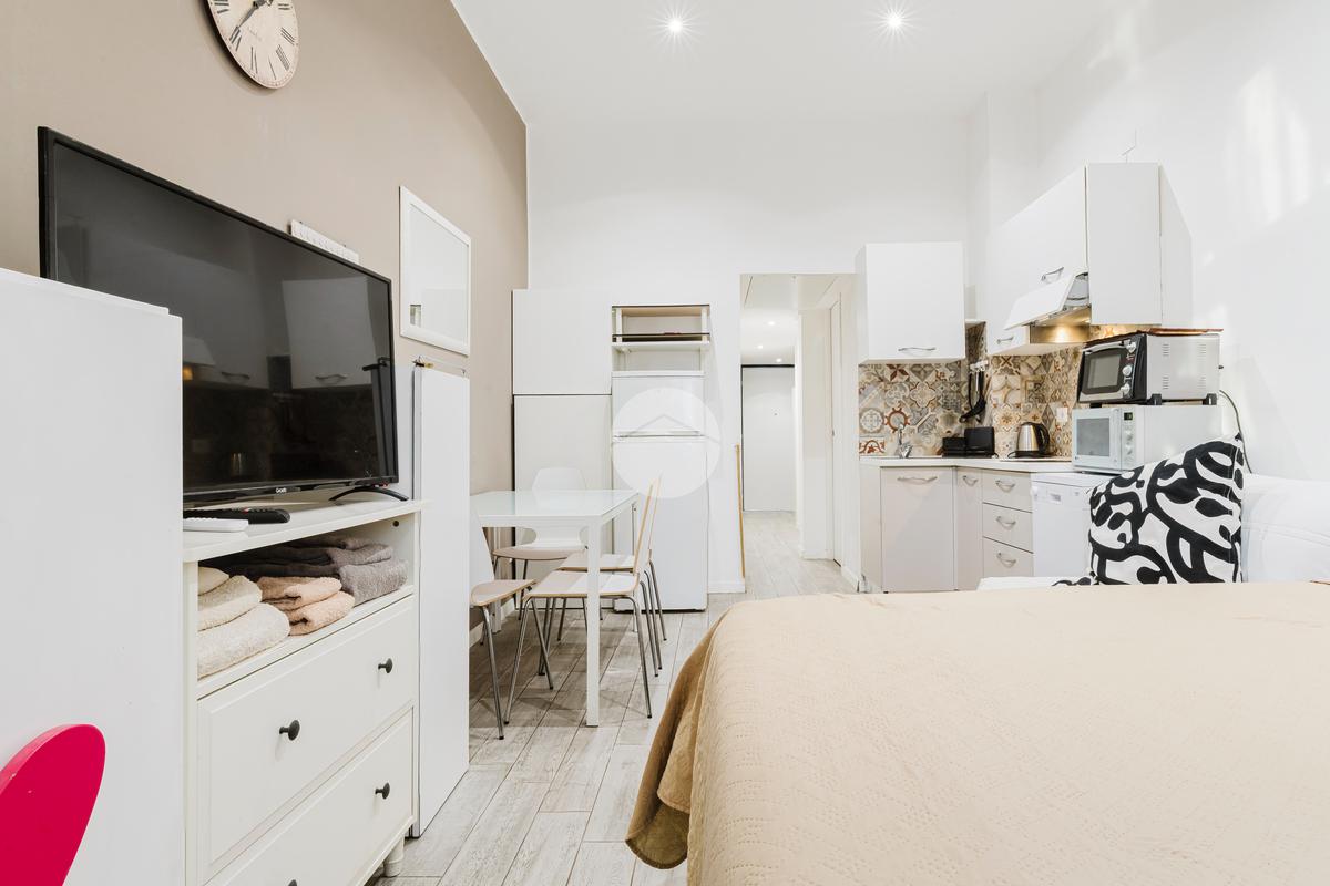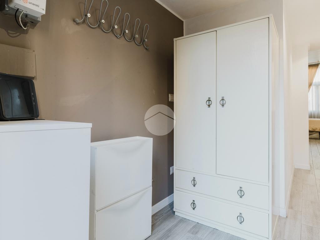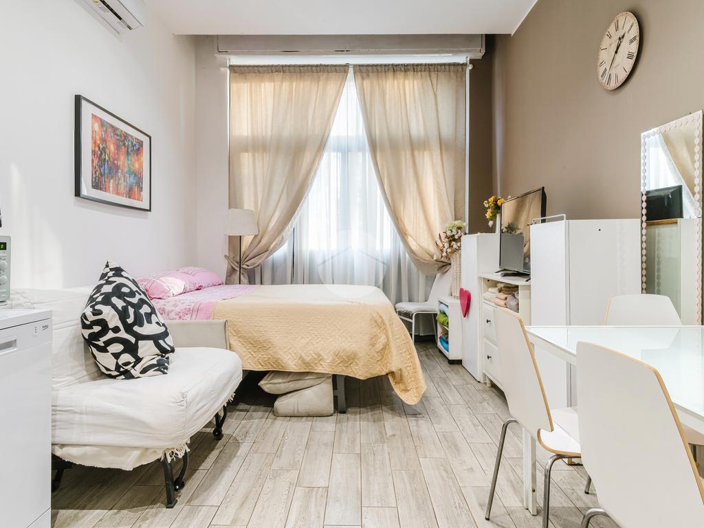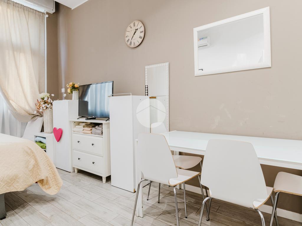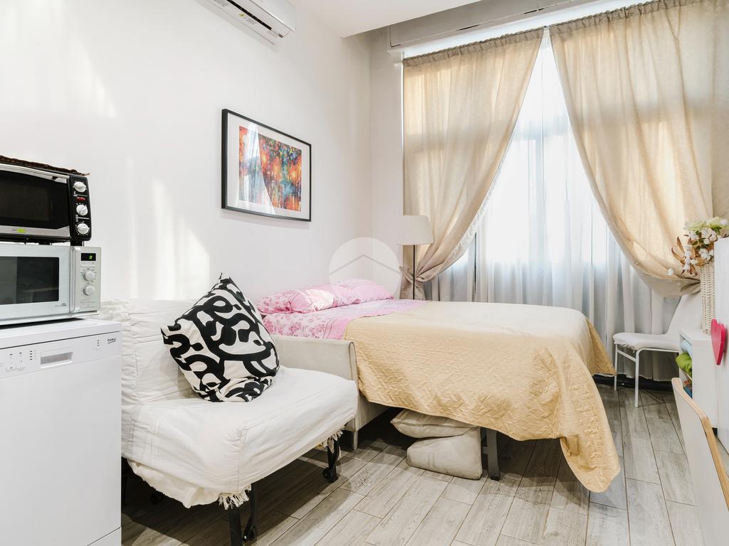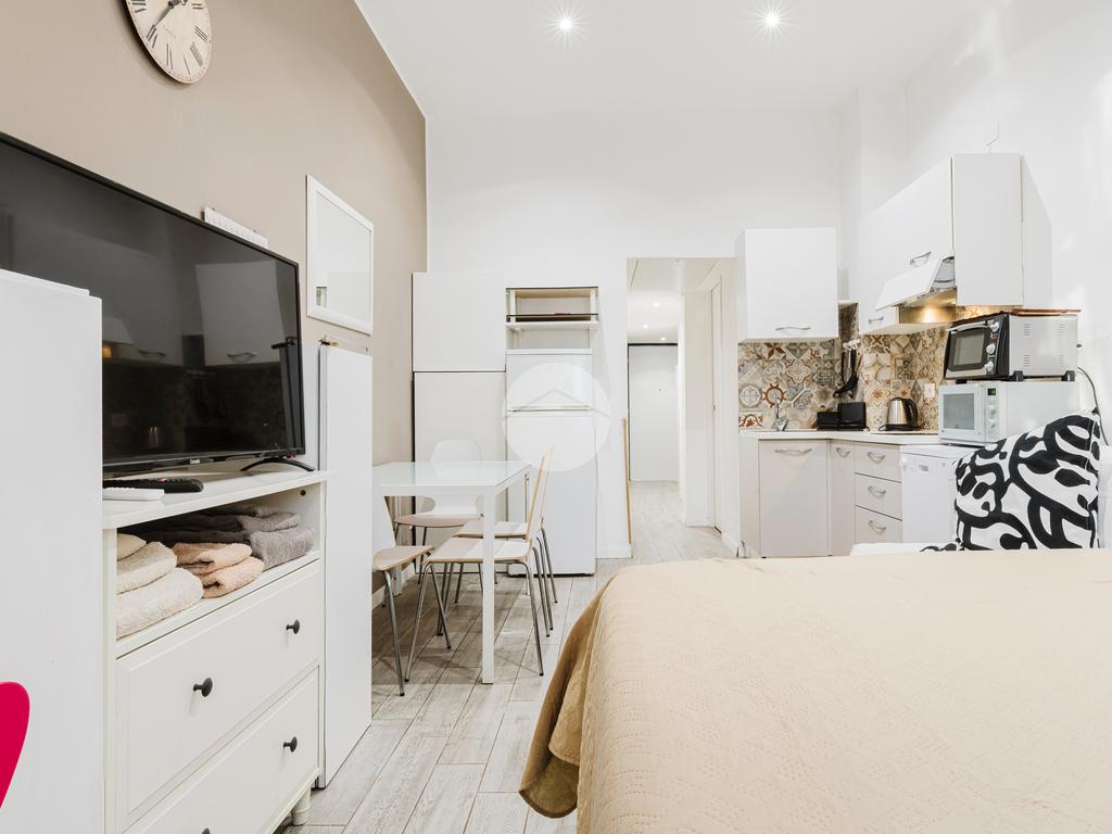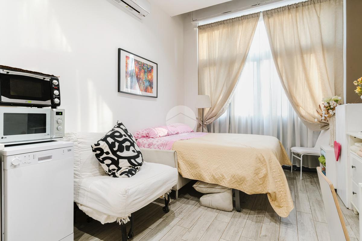 L’appartamento si apre su un unico ambiente ben distribuito, composto da zona giorno/notte, con letto matrimoniale, area relax e ampia finestra che dona luminosità agli spazi. La cucina a vista è completa di pensili, piano cottura, frigorifero, microonde e forno elettrico. La disposizione interna consente di sfruttare al meglio ogni angolo, grazie anche alla presenza di un tavolo da pranzo e di una pratica parete attrezzata.