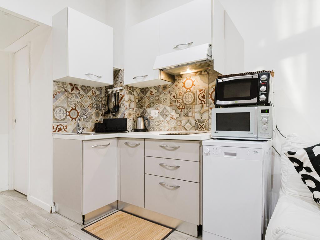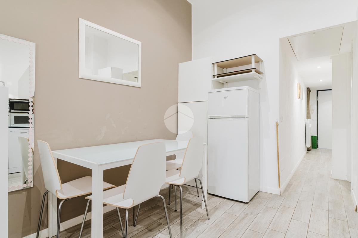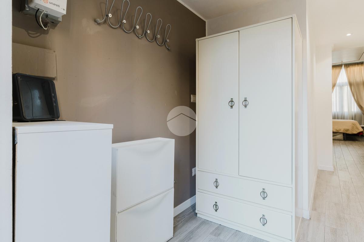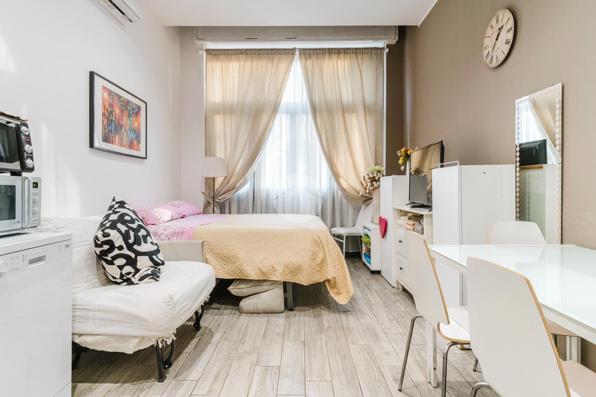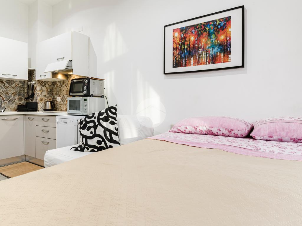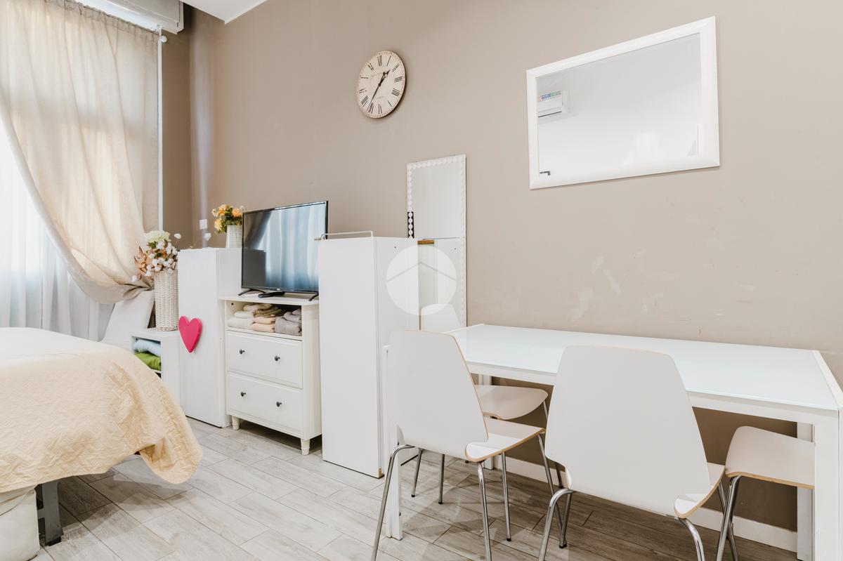 L’appartamento si apre su un unico ambiente ben distribuito, composto da zona giorno/notte, con letto matrimoniale, area relax e ampia finestra che dona luminosità agli spazi. La cucina a vista è completa di pensili, piano cottura, frigorifero, microonde e forno elettrico. La disposizione interna consente di sfruttare al meglio ogni angolo, grazie anche alla presenza di un tavolo da pranzo e di una pratica parete attrezzata.