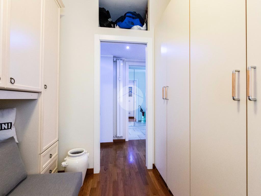 Completa la distribuzione interna un comodo spazio di disimpegno, ideale per l’inserimento di armadiature o ripostigli su misura.