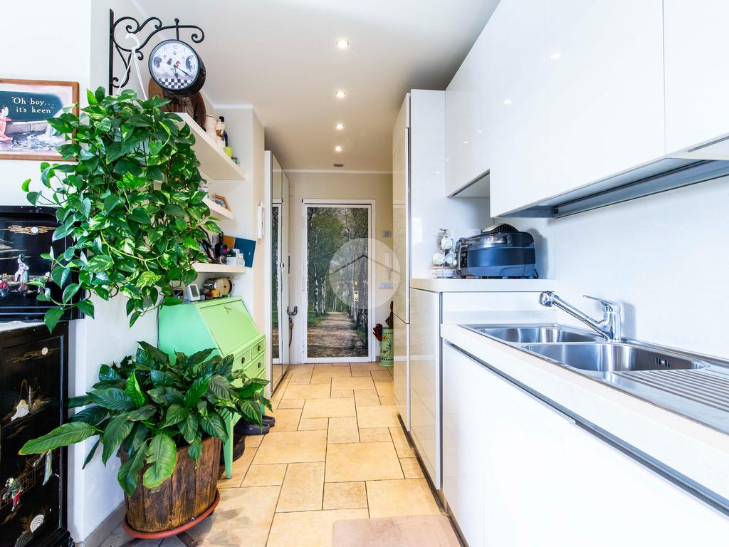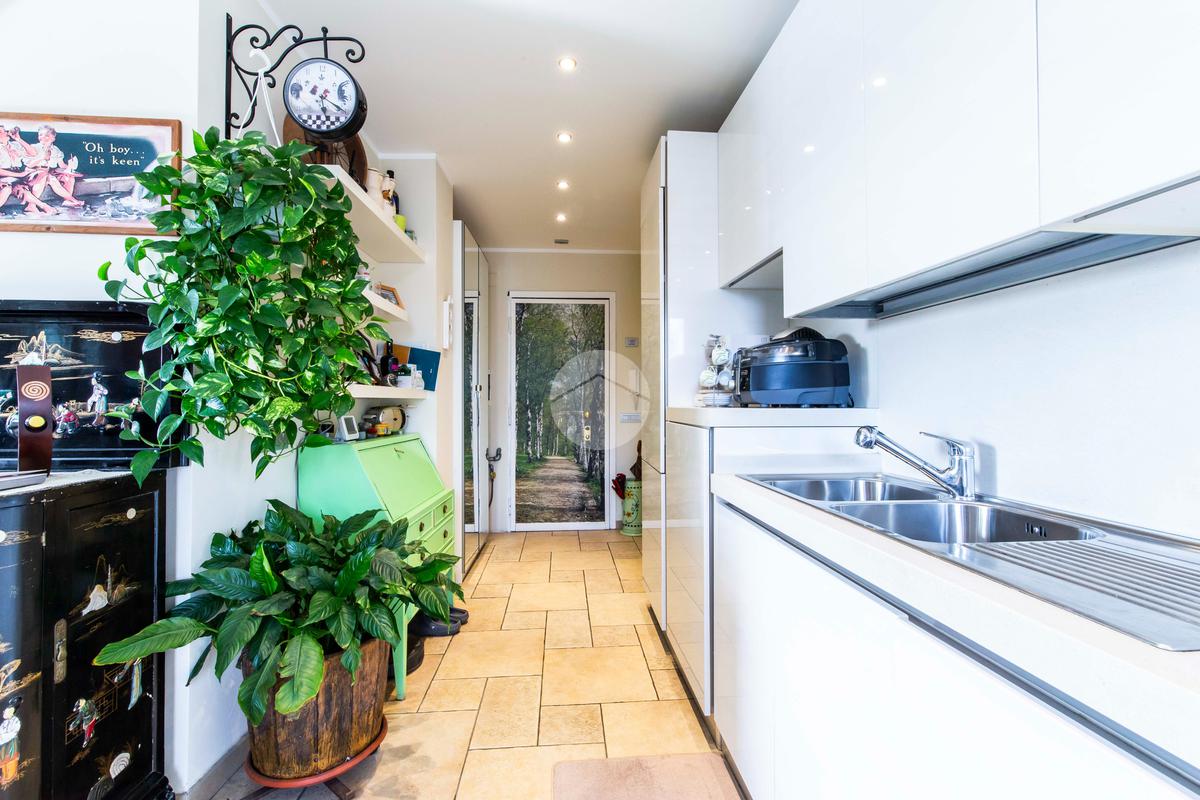 L’ingresso si apre su un corridoio che distribuisce in modo razionale tutti gli ambienti della casa, portando direttamente alla ampia zona giorno e cucina.